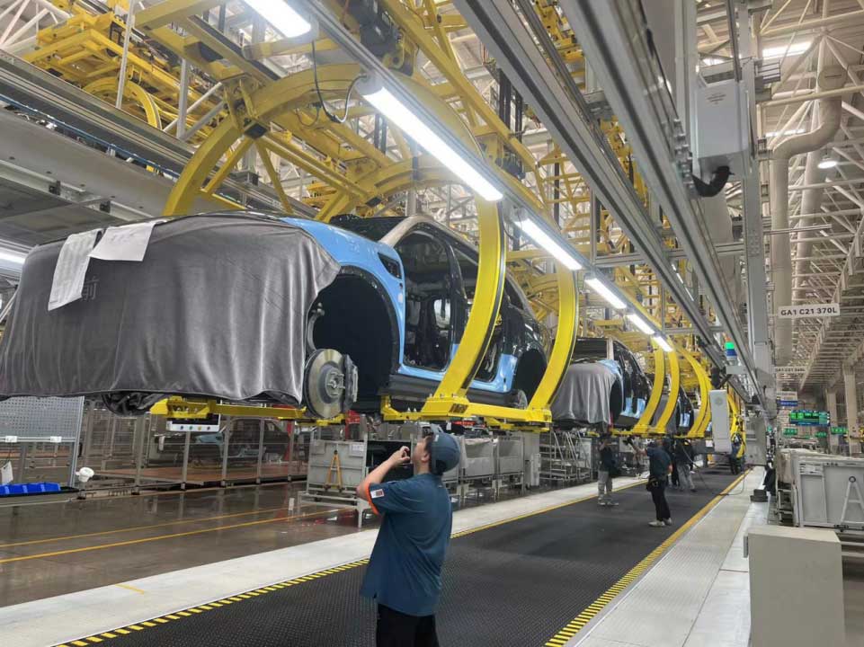 The NEV assembly line is specialized for manufacturing electric vehicles (EVs) and plug-in hybrid electric vehicles (PHEVs).